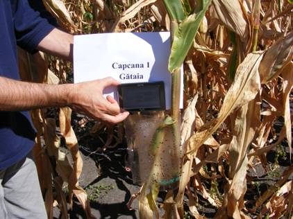To organize the practical work, first of all, the locations where we placed the traps were established (photos 1,2): Gataia (115m), Simand (115 m), Covasant (134 m), Chelmac (140 m), Soimi (145 m), Gura Vaii (164 m), Varfurile (228 m), Prisaca (270 m), Resita (323 m), Teregova (396 m) and Domasnea (557 m). This choice was based on the movements in different directions, starting from a low altitude (Gataia – 115 m) to a higher altitude (Domasnea – 557 m), that should allow the growing and the development of corn plants (photos 3, 4). As a result of studying the location possibilities, we installed on site 2 traps with Csalomon® sexual pheromone in each corn crop (that was considered an experimental version) (photos 5, 6). The distance between the 2 traps was of 100 m where the corn batch was large enough, and of 50 m where the distance was smaller.