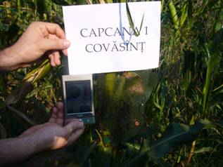 Foto 33, 34 - Instalarea capcane intr-o cultura de porumb din localitatea Domasnea