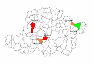 Legatura corelativa negativa (-0,78) s-a inregitrat intre numarul de indivizi de Diabrotica virgifera virgifera si altitudine.