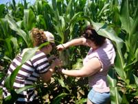 Photos 1,2 - Viewing and setting the best locations to set the traps; 3,4 - preparing the materials to picket the experimental plots and pheromone traps; 5,6 - the application of the traps on the corn plant